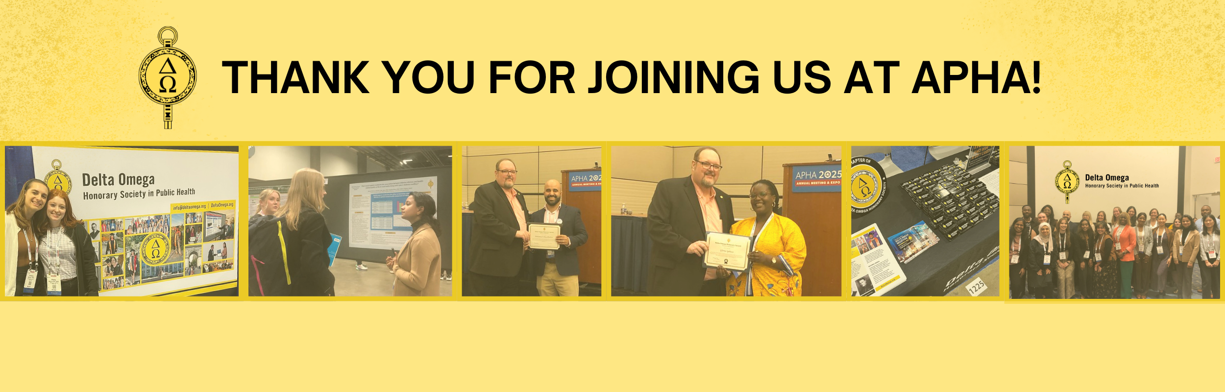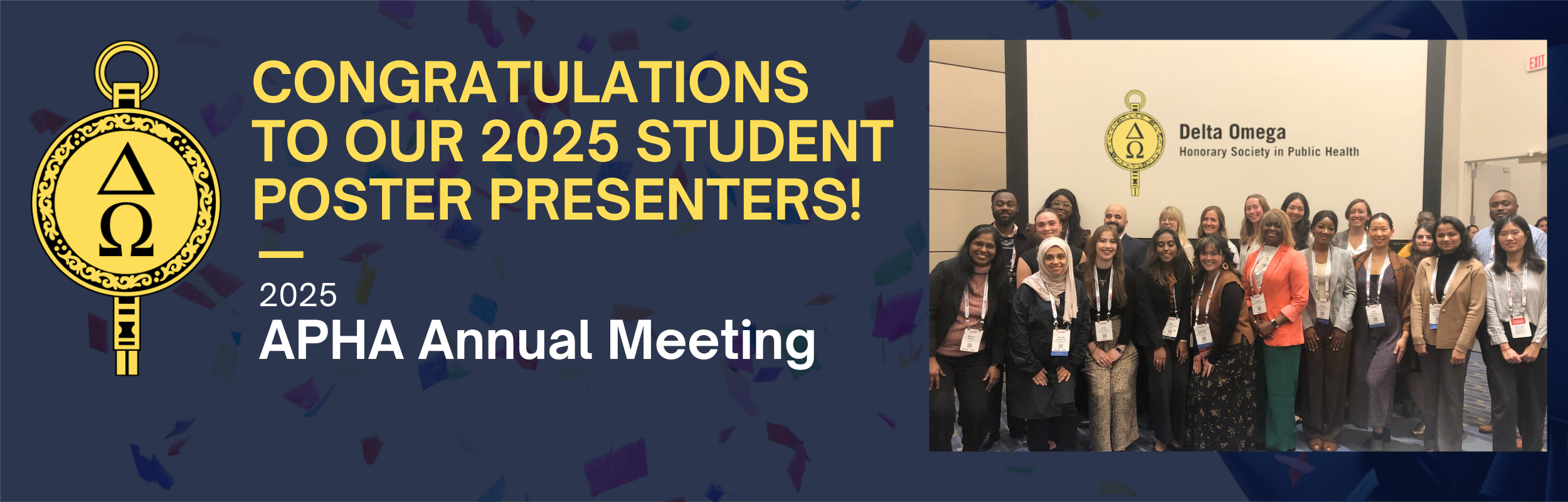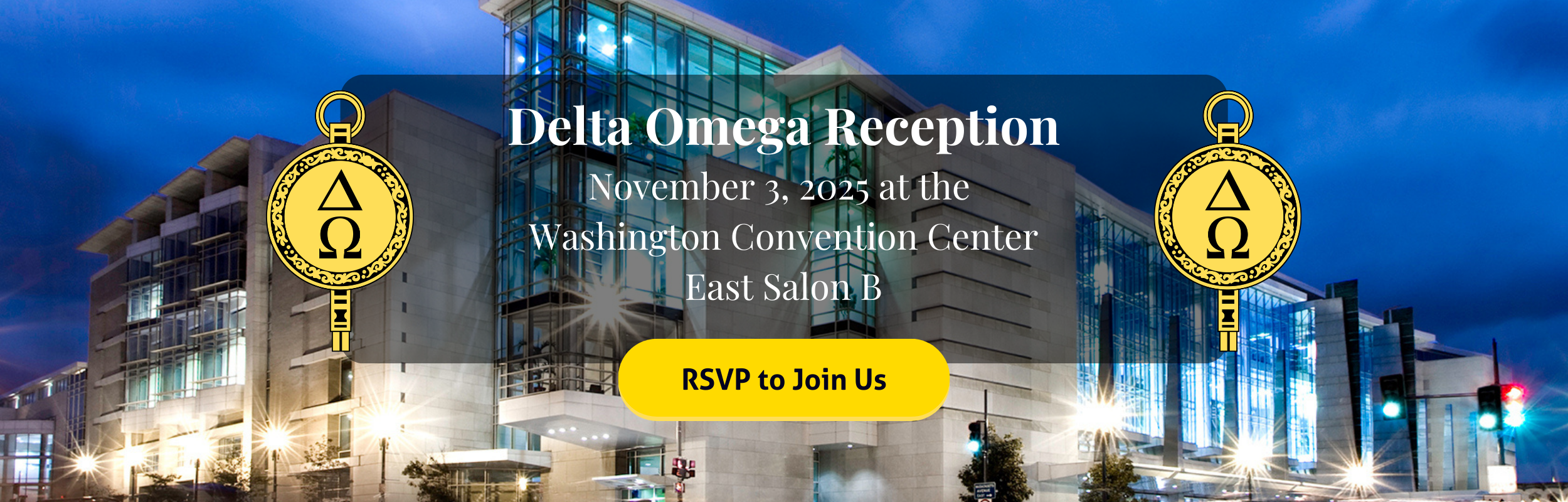 The Delta Omega Honorary Society in Public Health was founded in 1924 at Johns Hopkins University within the School of Hygiene and Public Health to promote the graduate study of public health, and to recognize outstanding achievement in the new field.